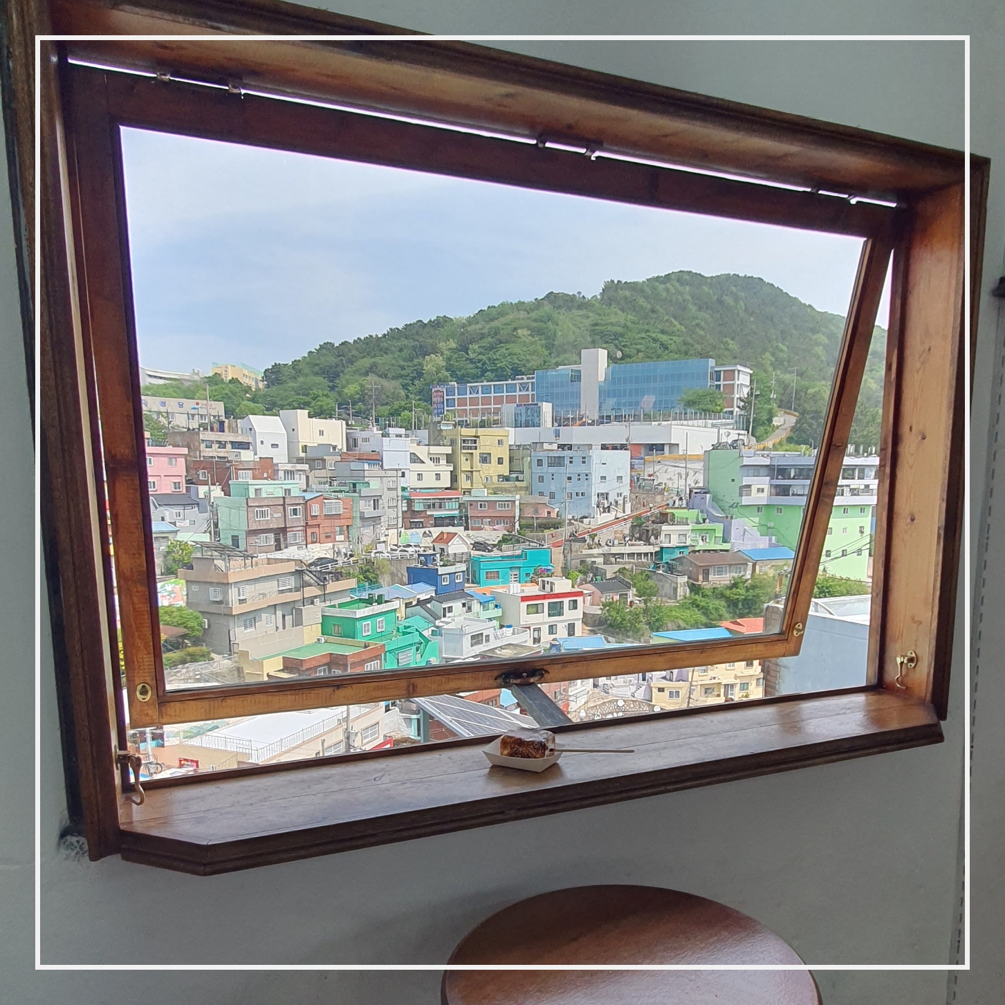 감천문화마을에서 가장 인기 있는 카페로, 탁 트인 테라스에서 마을 전경과 바다를 감상할 수 있습니다.