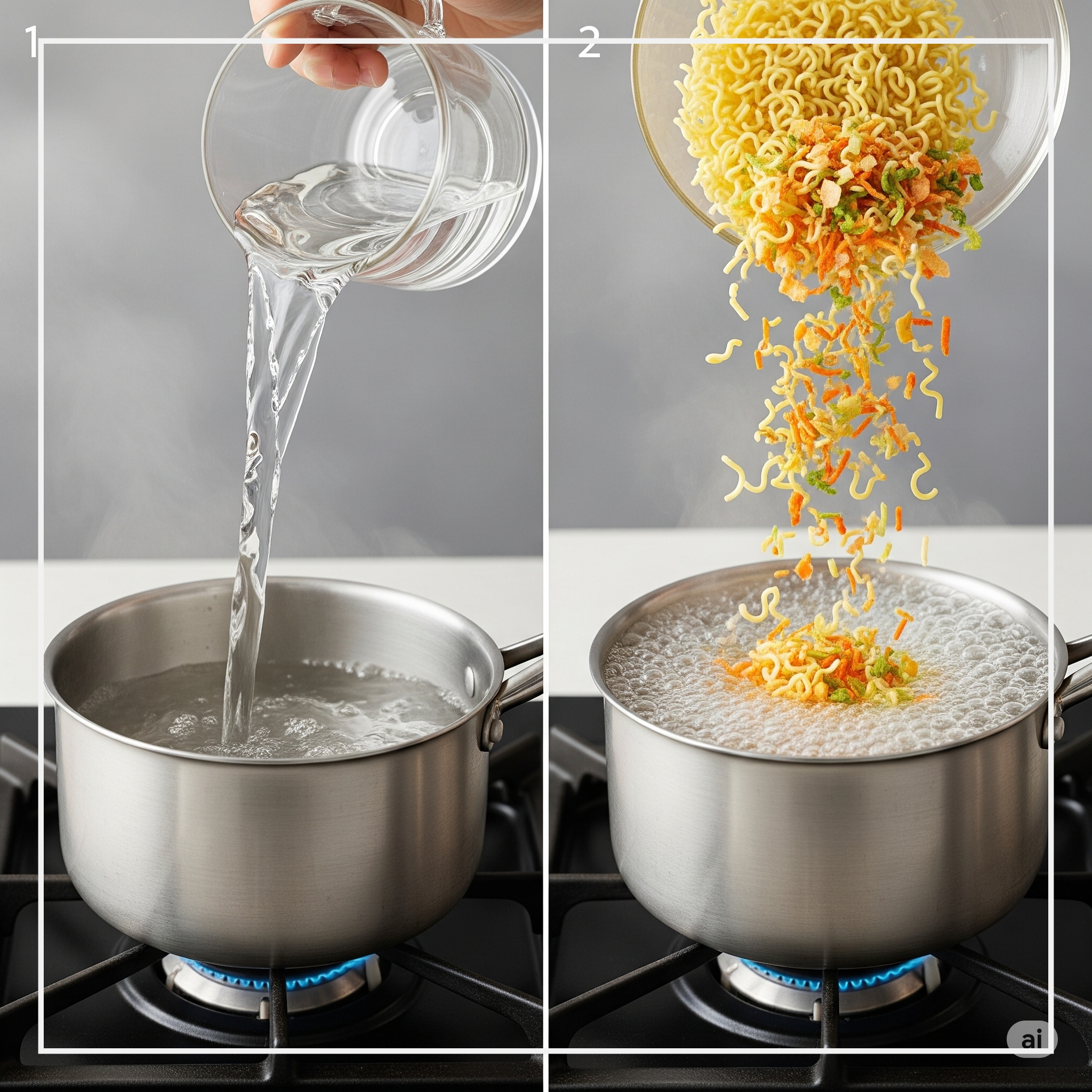 🍳 [2단계] 물 끓이기 + 면 + 야채스프