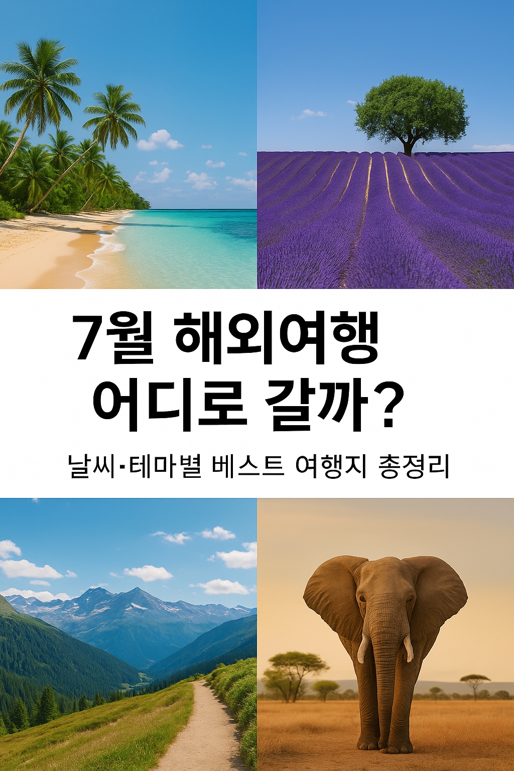오늘 준비한 내용은 7월에 최적화된 해외여행지를 테마별로 나눠 추천하고, 각 나라의 날씨 특징과 주의사항까지 꼼꼼히 알아보았습니다.