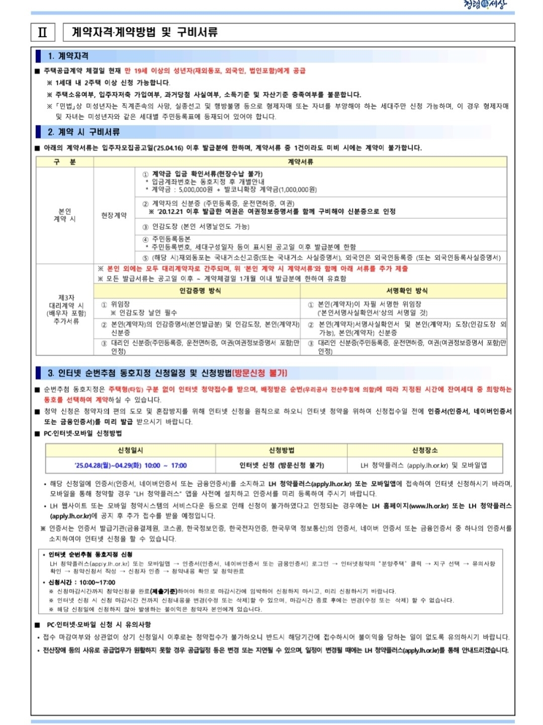: 주택공급계약 체결일 현재 만 19세 이상의 성년자 (재외동포, 외국인, 법인포함)에게 공급