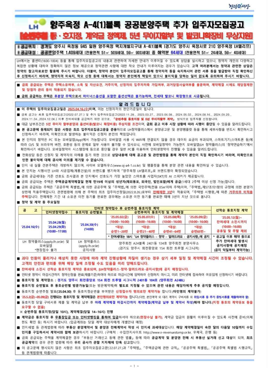 오늘은 많은 분들이 관심 가질 만한 <양주 옥정 A-4(1)블록 > 공공분양주택 추가 입주자 모집공고에 대한 정보를 알려드리려고 합니다.
